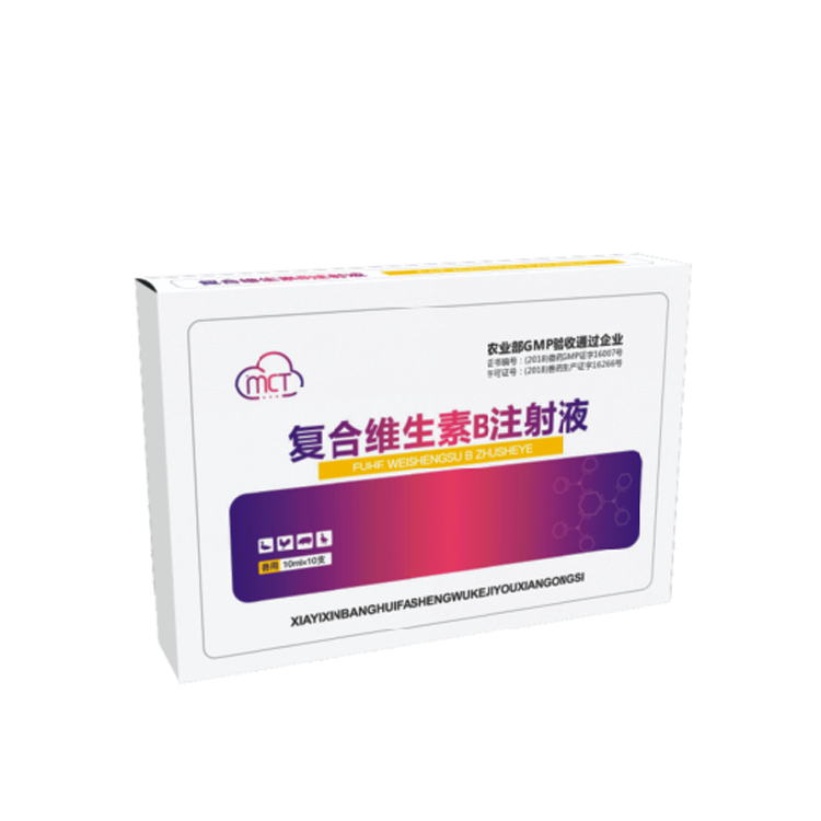【藥理作用】復(fù)合維生素B屬于調(diào)節(jié)組織代謝藥物。維生素B1對維持神經(jīng)組織、心臟及消化系統(tǒng)的正常機能起著重要作用。缺乏時,血中丙酮酸、乳酸增高,并影響機體能量供應(yīng);禽及幼年家畜則出現(xiàn)多發(fā)性神經(jīng)炎、心肌功能障礙、消化不良、生長受阻等。維生素B2是體內(nèi)黃素酶類輔基的組成部分。黃素酶在生物氧化還原中發(fā)揮遞氫作用,參與體內(nèi)碳水化合物、氨基酸和脂肪的代謝,并對中樞神經(jīng)系統(tǒng)的營養(yǎng)、毛細血管功能具有重要影響。維生素B6在體內(nèi)經(jīng)酶作用生成具有生理活性的磷酸吡哆醛和磷酸吡哆醇,是氨基轉(zhuǎn)移酶、脫羧酶及消旋酶的輔酶,參與體內(nèi)氨基酸、蛋白質(zhì)、脂肪和糖的代謝。此外,維生素B6還在亞油酸轉(zhuǎn)變?yōu)榛ㄉ南┧岬冗^程中發(fā)揮重要作用。